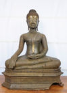 141 - Massive Lanxan bronze buddha with silver inlaid Laos 17th century
